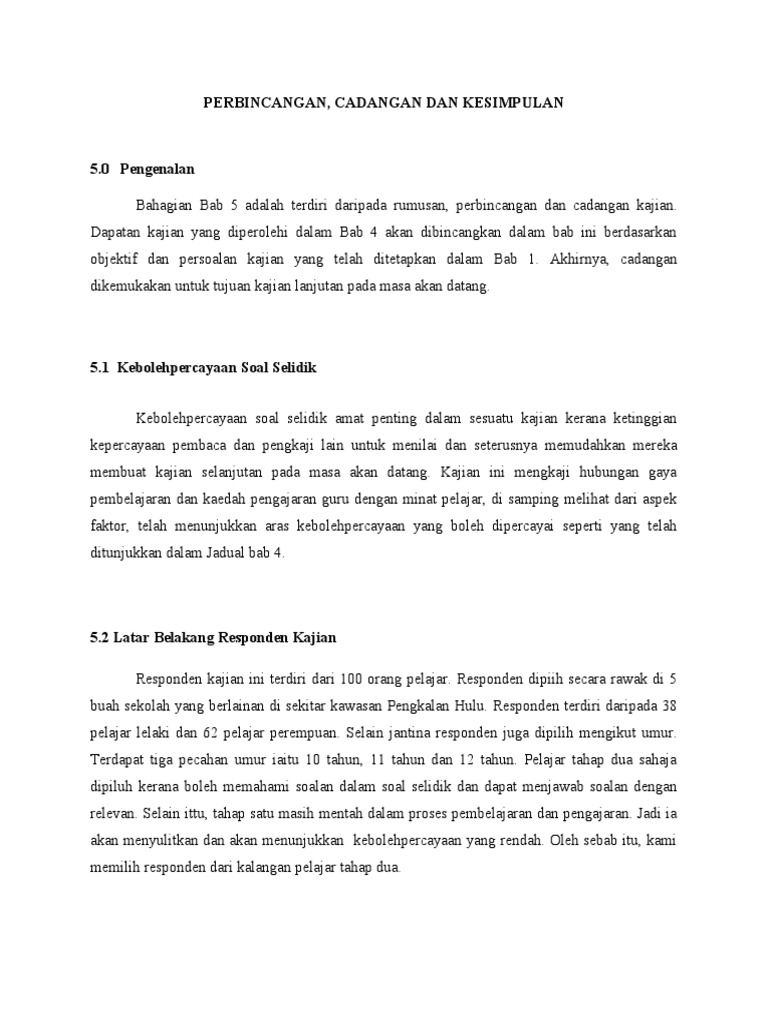 Perbincangan Cadangan Dan Kesimpulan Pdf